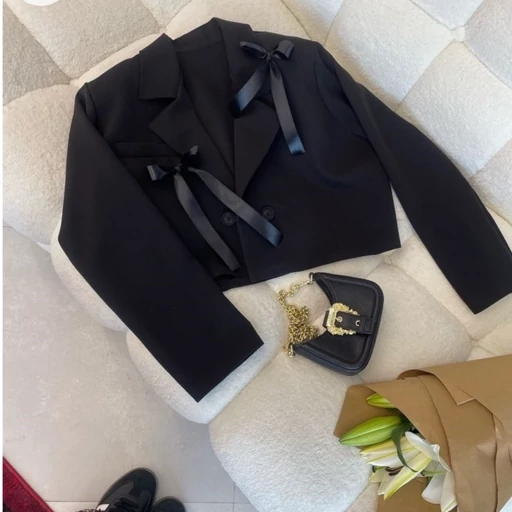 کراپ کت /کت پاییزه/کت مجلسی/کت پاپیونی/کت/کت جدید/کراپ کت مشکی